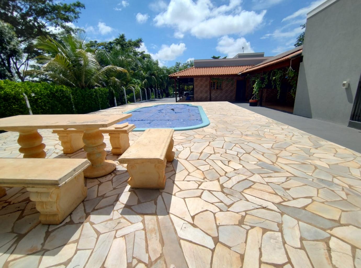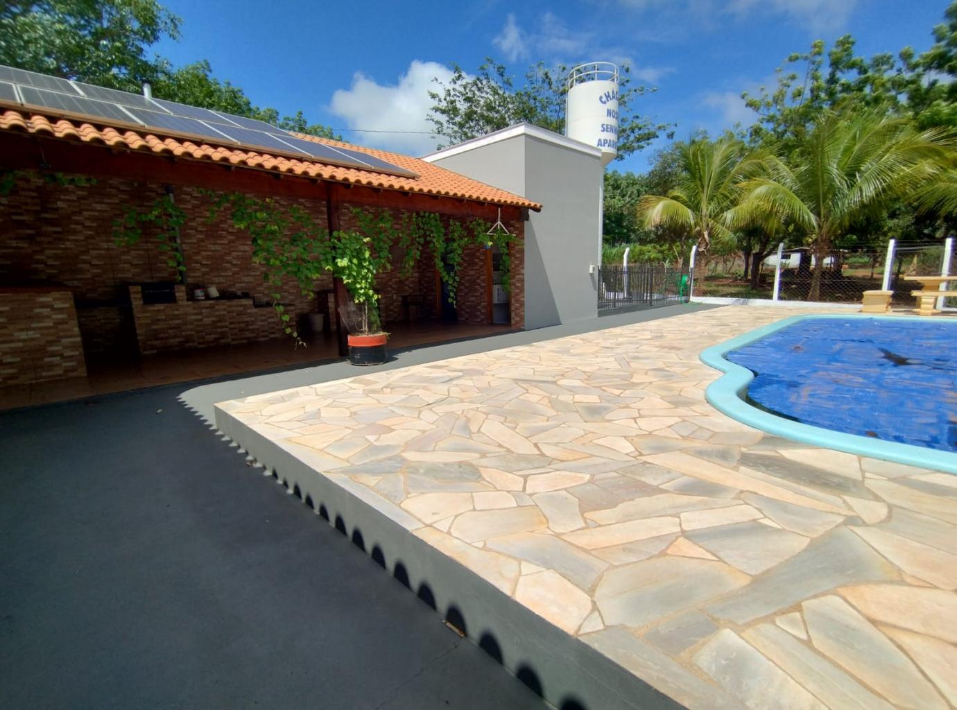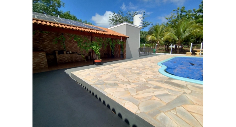 03 qts, sendo um suíte, sala, cozinha, banheiro social, banheiro na área da piscina, poço artesiano, caixa da agua, laje coberta, energia solar, portão eletronico, toda com alambrado em volta, barracão para criaçao de animais de pequeno porte!!!